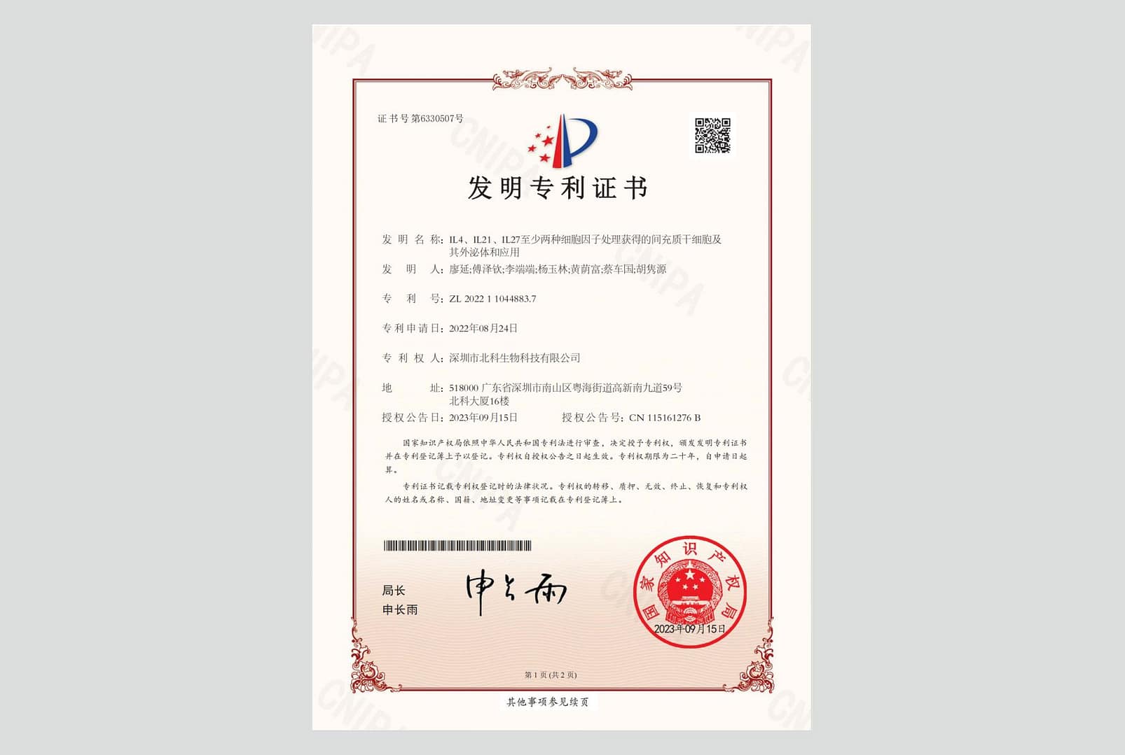 - The project in which Beike Biotech participated – “Key Technology Innovation and Clinical Application Research of Allogeneic Mesenchymal Stem Cells in the Treatment of Refractory Lupus Erythematosus” won the second prize of the National Technological Invention Award