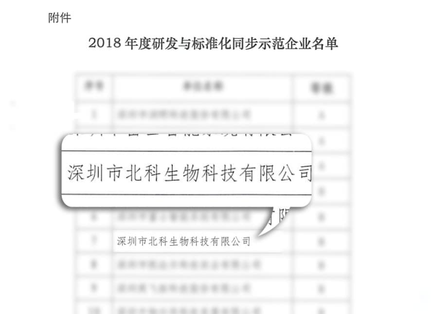 On February 20, 2019, according to the Shenzhen Market Supervision and Administration Bureau [2019] No. 41 document, Shenzhen Beike Biotechnology Co., Ltd. (hereinafter referred to as: Beike Biotechnology) won the “Synchronized R&D and Standardization Demonstration Enterprise”title.