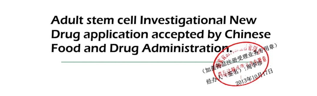 Beike submitted the Investigational New Drug (IND) application to register their UC MSCs for clinical use to the Guangdong Province Food and Drug Administration on October 17th, 2013 and was accepted.