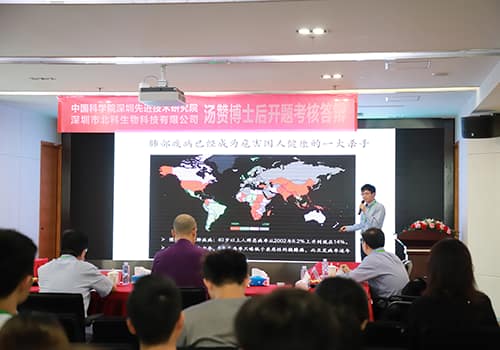 June 18,The thesis defense meeting of Dr. Tang Zan, a postdoctoral fellow jointly trained by the Shenzhen Institutes of Advanced Technology, Chinese Academy of Sciences and Shenzhen Beike Biotechnology Co., Ltd., was held at Beike Biotech. Expert leaders such as Ding Jian, professor of the School of Life Sciences of Xi’an Jiaotong University, Liu Gefei, associate professor of Guangdong Food and Drug Vocational College, Hu Yong, associate researcher of the Shenzhen Institute of Advanced Technology, Chinese Academy of Sciences, Dr. Hu Xiang, chairman of Shenzhen Beike Biotechnology Co., Ltd., and Dr. Liu Muyun, tutor of the postdoctoral workstation, attended the defense meeting.