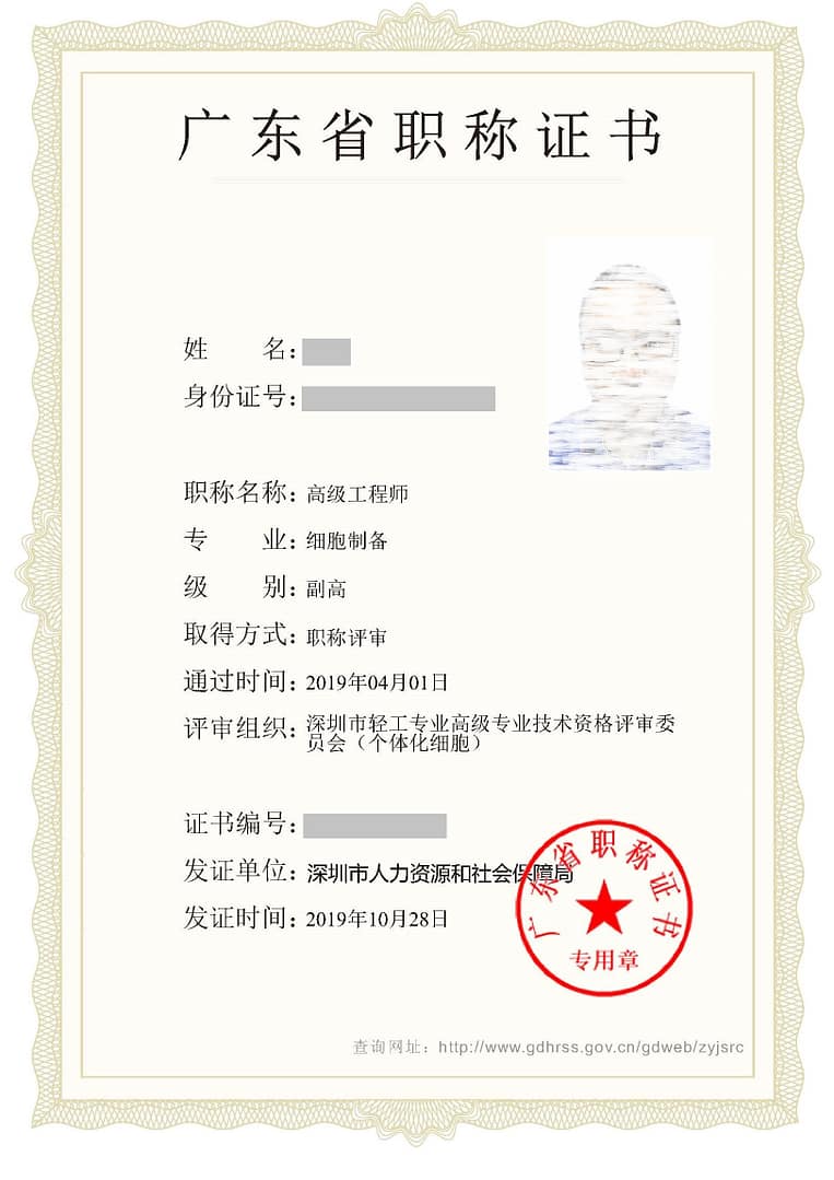 A few days ago, practitioners in the cell industry received encouraging news, The “Cell Preparation Senior Engineer Professional Title Certificate” and “Cell Quality Management Senior Engineer Professional Title Certificate” issued by the Shenzhen Municipal Ministry of Human Resources and Social Security have been officially produced and can be inquired through the Guangdong Government Affairs official website. This milestone event marks that professional and technical talents in the emerging industry of personalized cell technology finally have their own baseline;”>”Talent household registration book”, the cell industry officially startedOn March 30, 2019, bearShenzhenComprehensive cell libraryThree technical managers of Beike Biotechnology have passed the review and defense and obtained the title of senior engineer! It is reported that in addition to the three people who have obtained the deputy senior professional title level, the 18 engineers selected in the first batch also include 8 people with intermediate professional titles, and 7 people with junior professional titles.