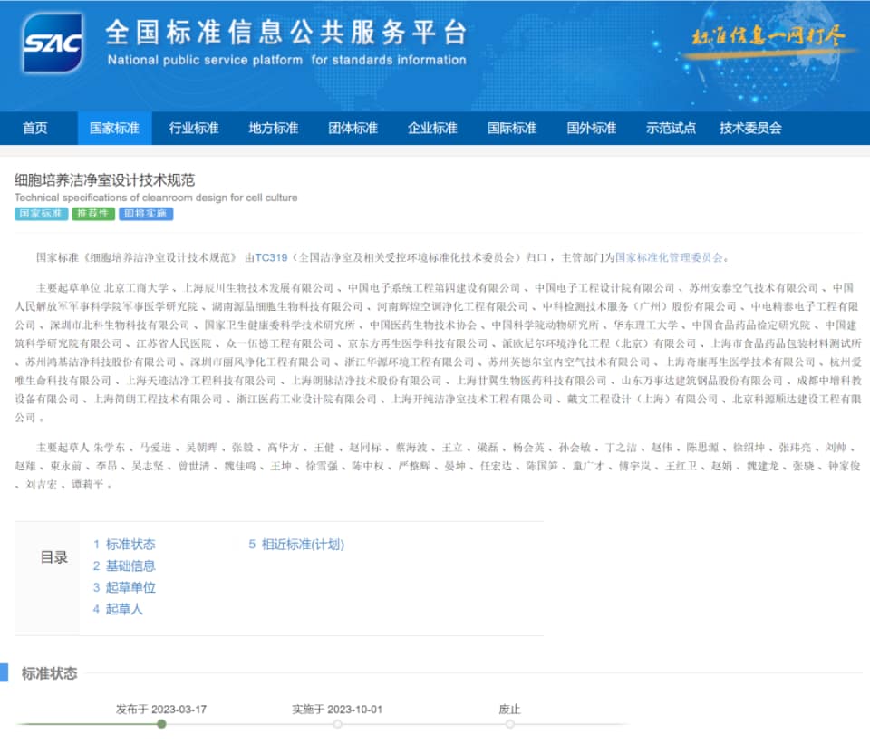 On March 17, 2023, the State Administration for Market Regulation and the National Standardization Administration Committee issued China National Standard Announcement No. 21 of 2022, which National standard for clean rooms and related controlled environments GB/T 42398-2023 “Technical Specification for Design of Cell Culture Clean Rooms” was officially released and will be implemented on October 1, 2023. Shenzhen Beike Biotechnology Co., Ltd., as a leading company in the domestic cell industry, was invited to participate in the drafting and formulation of this national standard.